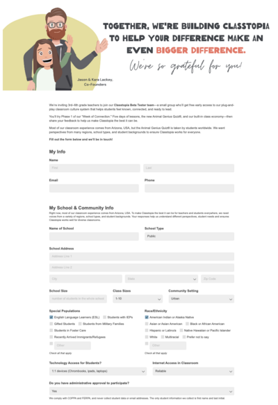 You're helping us make sure every teacher’s voice is represented in Classtopia.