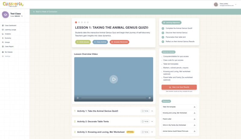 As part of this launch, students take the newly updated Animal Genius Quiz®, which helps them discover their strengths while giving teachers analytical insights into their class and how each student learns, leads, and connects.